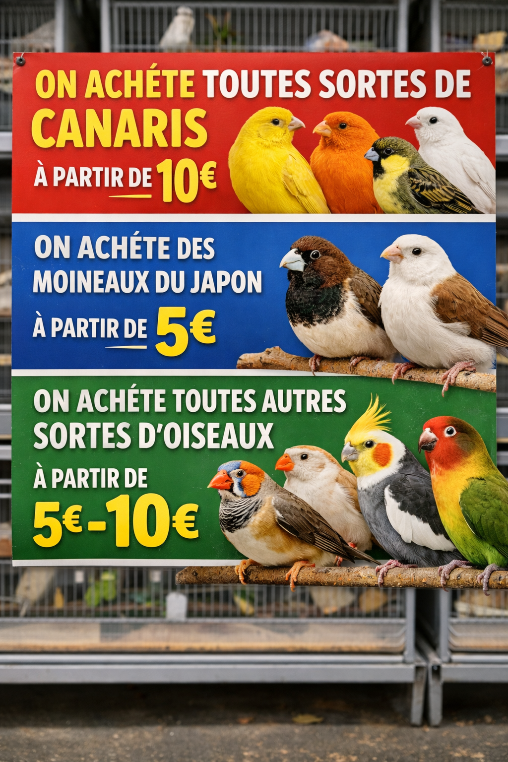 La taille dépend de l'espèce : Canari minimum 60x40x50cm, Perruche minimum 60x40x50cm, Perroquet minimum 100x70x80cm. Contactez-nous pour des conseils personnalisés !
